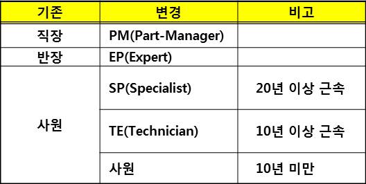 비앤지스틸은(이하’당사’)는 11월 1일자로 지난 30여 년간 지속되어온 생산직 사원 대한 호칭을 개선했다. 기존의 직장, 반장, 사원의 3단계 직급체계를 PM(Part Manager), EP(Expert), SP(Specialist), TE(Technician), 사원 등 5단계로 바꾼 것이다. 20년 이상 장기근속자가 많아 기존의 3단계 직급체계 만으로는 전문 기능, 기술인에 대한 처우가 부족함을 느꼈기 때문이다.